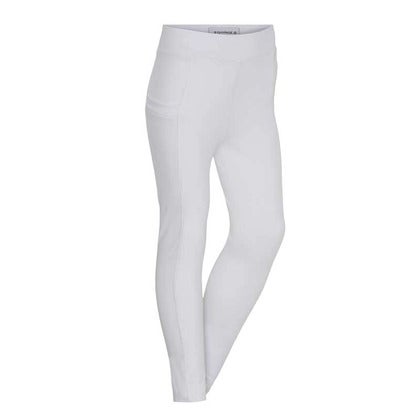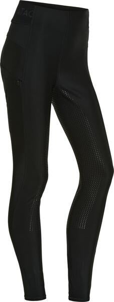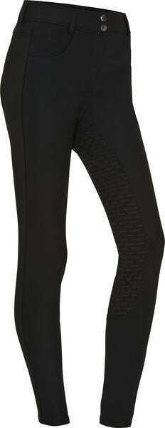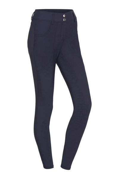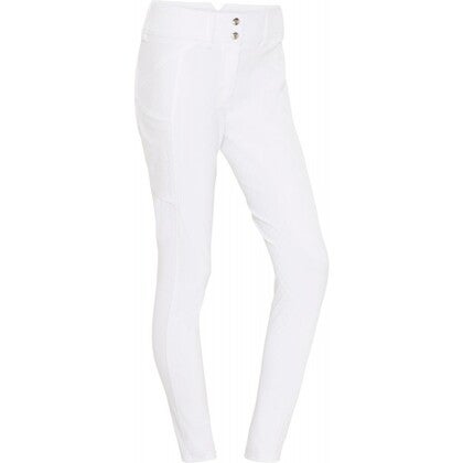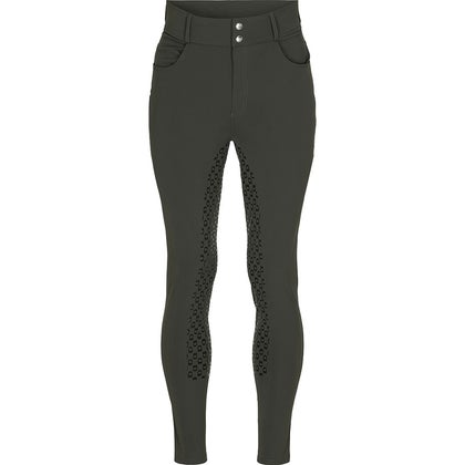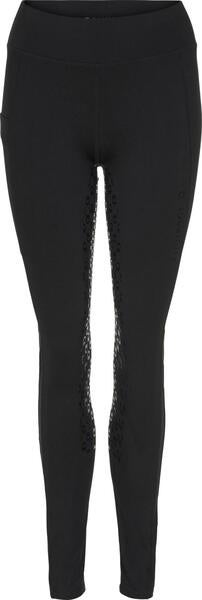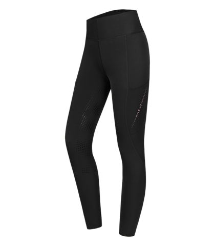 Materialet er bi-elastisk, formstabilt og åndbart, hvilket giver en behagelig pasform og optimal støtte til figuren. Den lette kompressionseffekt og det figurskabende snit fremhæver kroppens linjer på en flatterende måde. Ridebukserne har silikonegrip i fuld flade med forskellige grebzoner for sikkert og fleksibelt greb i sadlen. Sædet er dekoreret med et integreret silikoneprint-logo, der giver et stilrent udtryk.
