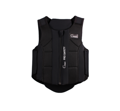 Rygbeskytterens elastiske, lette og åndbare stof sikrer maksimal komfort, så ryttere kan koncentrere sig fuldt ud om deres præstationer. Lynlåsen foran med SWING Safety Puller giver mulighed for ubesværet åbning og lukning, selv i nødstilfælde eller når du har handsker på. CMZ-lynlåsen af høj kvalitet sikrer nem på- og aftagning.