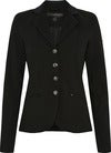 Klassisk enkeltradet konkurrencejakke med en blidt afrundet kant foran. Designet af et smukt glat stof, som giver maksimal komfort for rytteren.