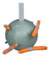 Bolden er fremstillet i slidstærkt termoplastisk gummi med en robust PU belagt yderside, som gør den særligt holdbar og velegnet til daglig brug i stalden eller udendørs. Den kraftige nylonløkke øverst gør det nemt at hænge gulerodskuglen op, så den kan placeres i passende højde for hesten.