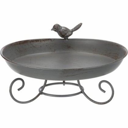 Funktionelt fuglebad der passer perfekt til haven eller terrassen. Det grå metaldesign giver et klassisk og tidløst udseende, der både tiltrækker fugle og pynter i udemiljøet. Fuglebadet står på en robust fod, som sikrer stabilitet og gør det nemt at placere på forskellige overflader.