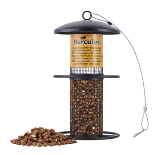 Elegant og funktionelt fuglefoderautomat designet til peanuts. Fremstillet af mat sortlakeret metal, kombinerer den både holdbarhed og stil, hvilket gør den til en attraktiv tilføjelse til enhver have.